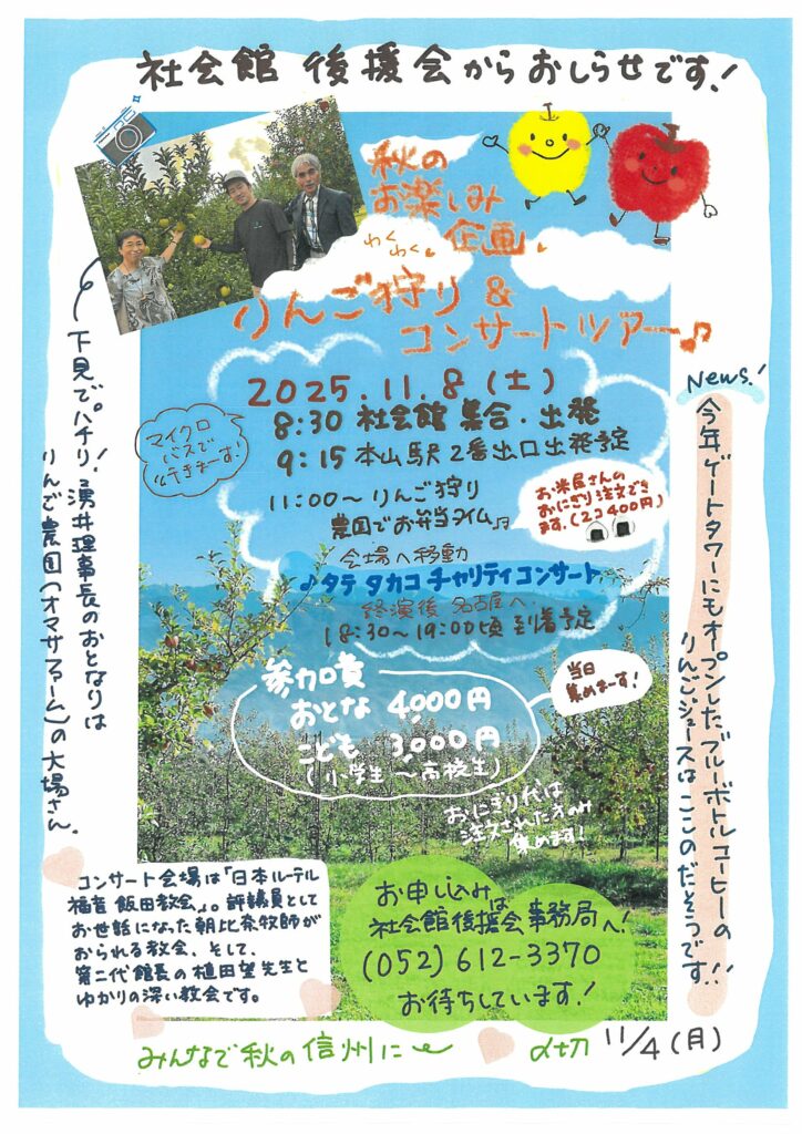 名古屋キリスト教社会館後援会では秋のお楽しみ企画として